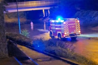 VIDEO: Voda zalila cesto pod mostom v Ljubljani, moški se je kopal pred gasilci