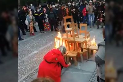 VIDEO: Pred državnim zborom v Ljubljani zakurili poslanske stolčke