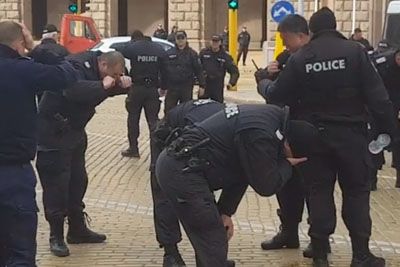 Bolgarski policisti s solzivcem nad protestnike, zdaj so postali tarča posmeha