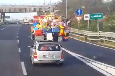 VIDEO: Prizor z avtoceste v Italiji obkroža svet! Tako so natovorili avtomobil...