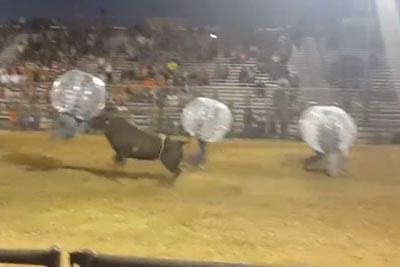 Norci v velikih balonih izzivali jezne bike. Poglejte si, kakšen je bil rezultat!