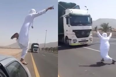 Kakšen neumnež! Skočil je pred tovornjak, nesreči se je za las izognil...