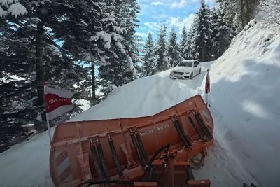 Pluženje snega na Tirolskem navdušilo splet: Posnetek iz kabine voznika