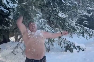 Bavdek v snegu le v spodnjicah: Njegovo snežno tuširanje navdušilo splet