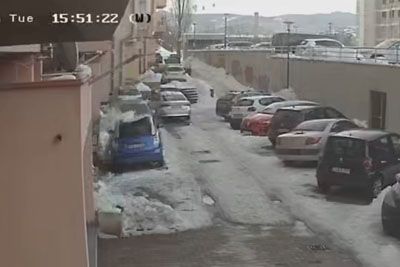 Nevaren prizor iz Sarajeva: Kos ledu s strehe padel na avtomobil