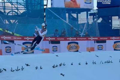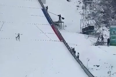 Domen Prevc ob izteku skakalnice poletel v oglasne panoje