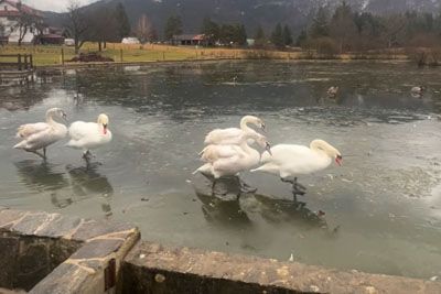 Na slovenskem posestvu posneli floto labodov