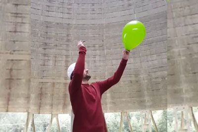 Tako se sliši zvok, če v stolpu jedrske elektrarne počimo balon