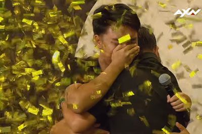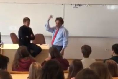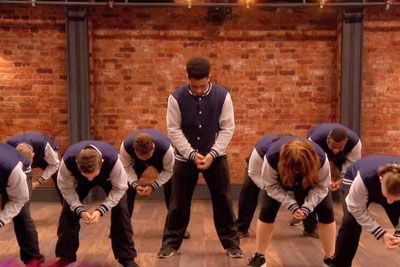 Vsi se odmaknejo in Janeza spustijo do prodajnega pulta.