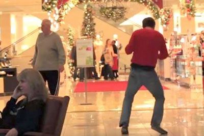 V božičnem puloverju je obiskal trgovino, s plesom je vsem polepšal dan