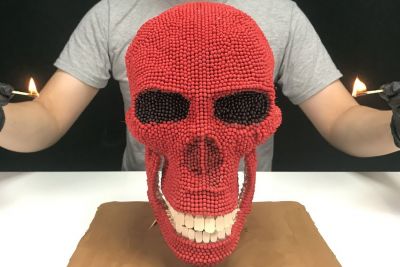 Iz vžigalic je sestavil lobanjo. To je rezultat, ko prižge eno vžigalico...