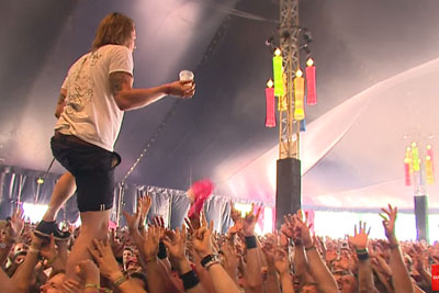 Oboževalci so v zrak dvignili pevca, ta je tam nato na nemogoč način ulovil pivo ter jo pred vsemi spil
