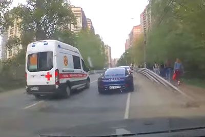 Voznik Porscheja ustavil Mercedesa, ki je vozil za reševalnim vozilom