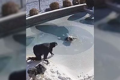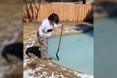 Dekle padlo v vodo, ko je z lopato tolkla po zamrznjenem bazenu