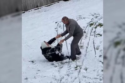 Babica se je sankala po snegu: Posnetek je prava doza dobre volje!