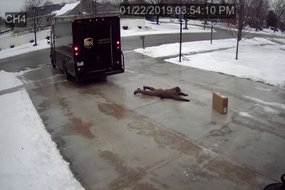 Tako se je znašel dostavljalec, ko je naletel na zamrznjeno dvorišče
