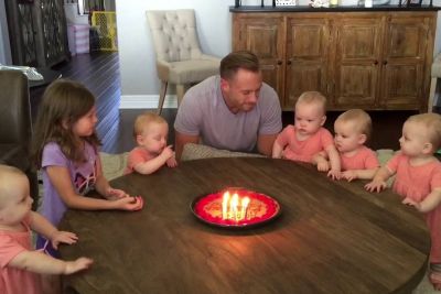 Očka je za rojstni dan upihnil svečke, peterčice so z odzivom nasmejale svet