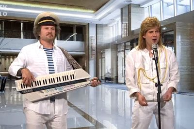 Brodolomca plavata in oba sta že krepko izmučena. Eden vpraša: