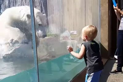 Polarni medved poskušal napasti otroka na drugi strani stekla