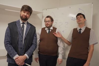 Pravnika pogledata napis, se spogledata, med sabo zamenjata sendviča in pivo in mirno začneta jesti.