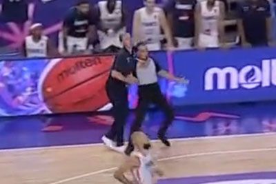 Presenečeno gleda dol in zamomlja: "Čudno, ne spomnim se, da bi to pojedel..."