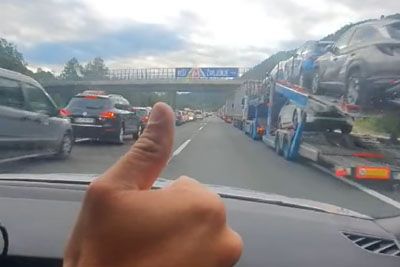 Filmski posnetek iz Romunije: Mercedes poletel čez krožišče in dve vozili