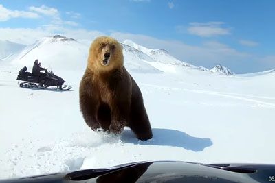 Na motornih saneh sta zasledovala medveda, malo je manjkalo do tragedije