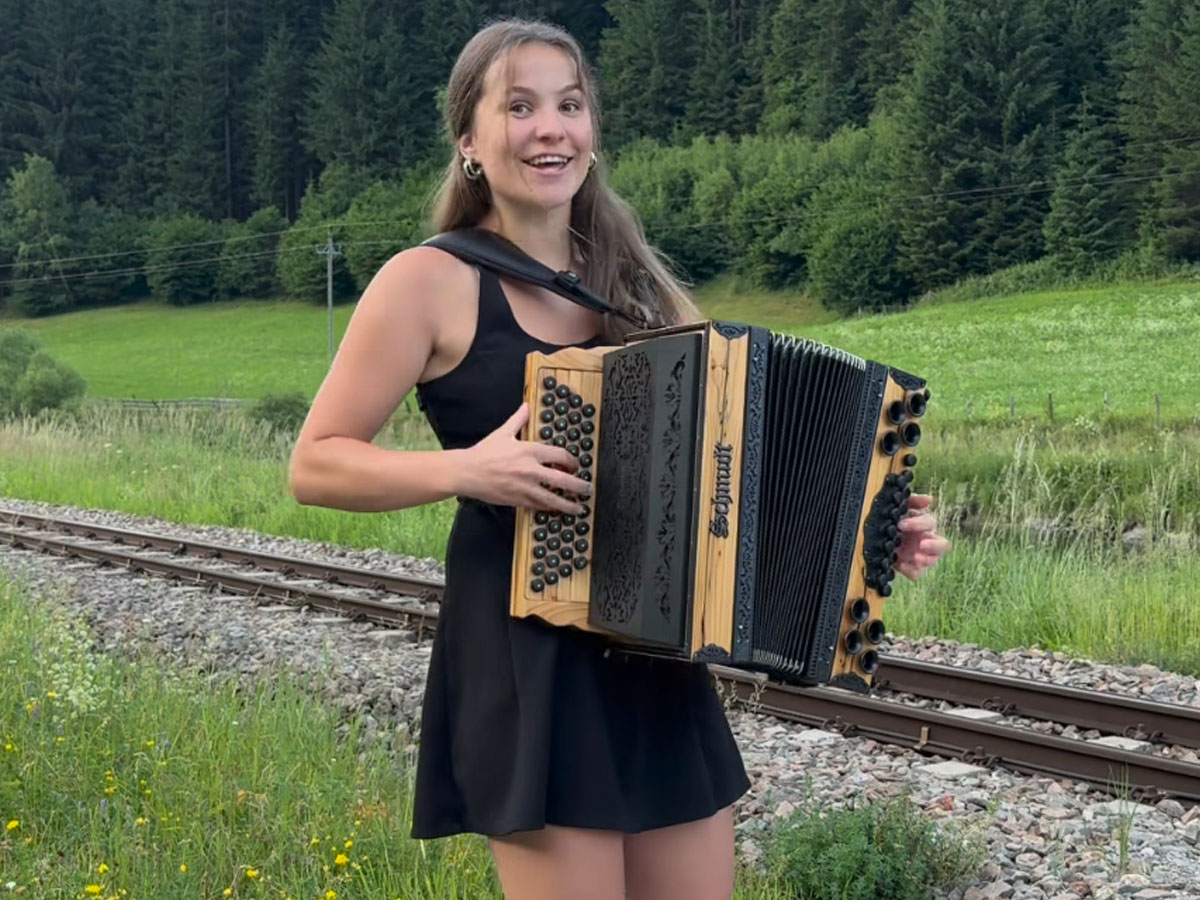 24-letna Avstrijka na harmoniko zaigrala slovensko pesem, ki jo poznamo iz otroštva