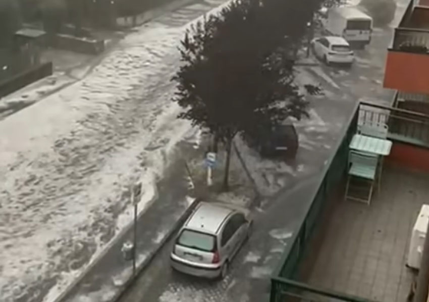 Drama v Italiji: Močan naliv s točo ulico spremenil v deročo reko!