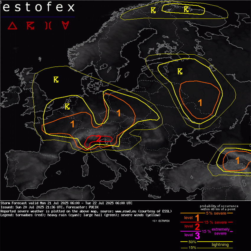 "Zaradi močnih sunkov vetra, velike do zelo velike toče in v manjši meri zaradi tornadov je bila od severne Italije do zahodne Slovenije izdana 2. stopnja nevarnosti," opozarja Estofex, skupina evropskih meteorologov in študentov meteorologije, ki se je v preteklosti že večkrat izkazala z natančnimi vremenskimi opozorili. Previdnost danes ne bo odveč!