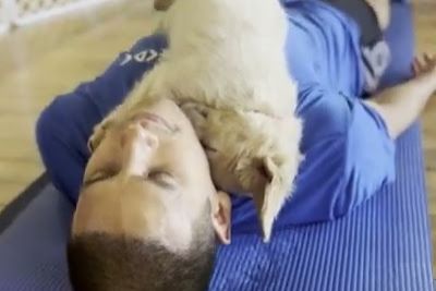 Mladiček zlatega prinašalca zaspal med jogo: Posnetek ima že milijon ogledov!