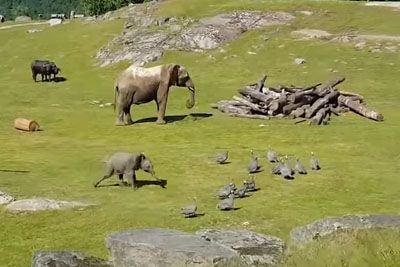 Vsi se odmaknejo in Janeza spustijo do prodajnega pulta.