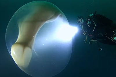 Posnetek, ki jemlje sapo: Potapljači plavali ob jajčecu orjaškega lignja!