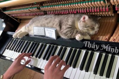 SMEH: Na klavir je zaigral "Boogie Woogie", njegova mucka se ni pustila motiti