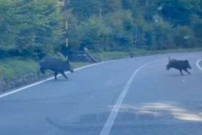 VIDEO: Voznik iz Italije ostal brez besed, cesto je prečkalo 18 divjih prašičev